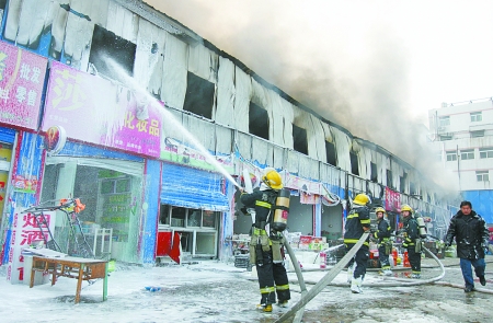 很多商户反映,起火点是南排4号商铺,老板姓余。余老板称,当时,他们商铺没人,起火原因他也不知道。 该市场位于文化路上的西门是市场的_通道,昨日12时许记者赶到时,大门口已有民警把守。几辆消防车停在门外,不间断地向市场内供水。
