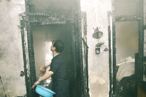 据住户透露,大约在早上九点半,爆炸声是从客厅的电视机方向传来的,几秒钟后明火变着了起来,电视机用了很多年了也并未打开,电视机上方挂了一个插线板,具体谁先起火也不太清楚